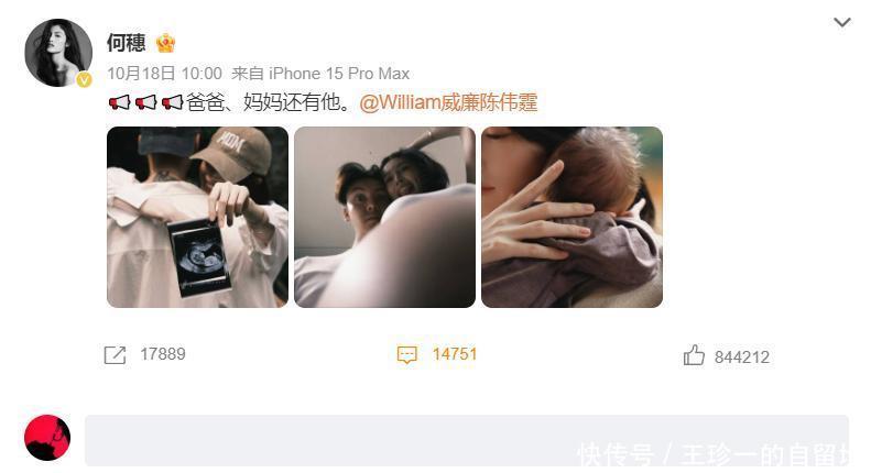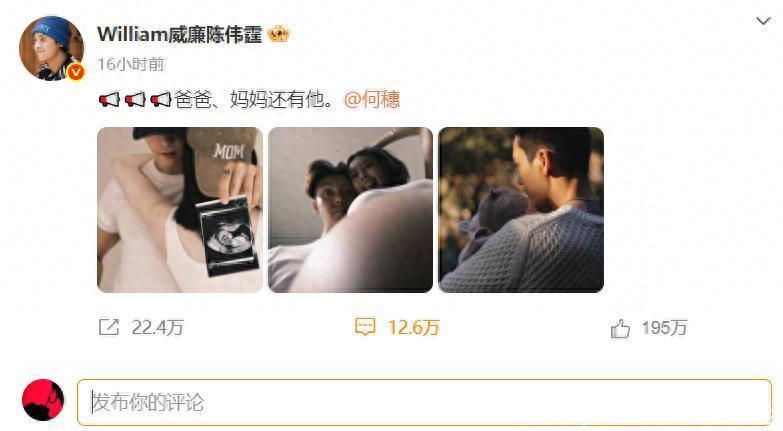 10月18日上午,陈伟霆和何穗同时发文“爸爸、妈妈,还有他”,并互相艾特了彼此。