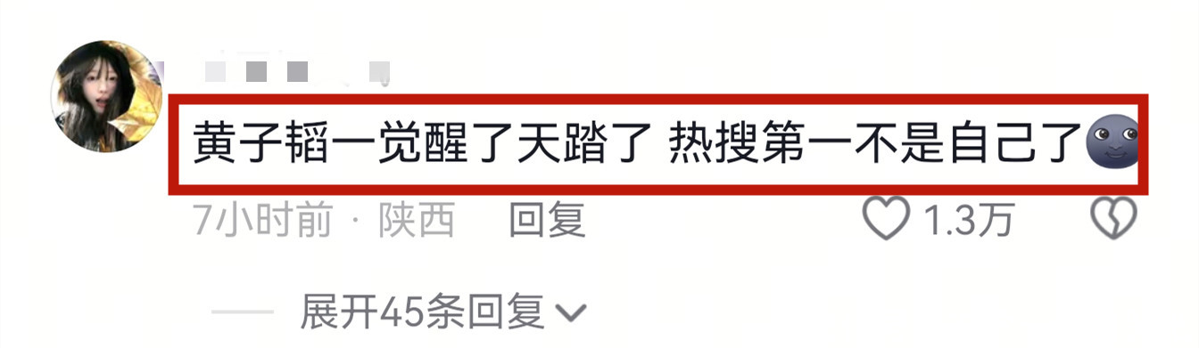 有网友说陈伟霆何穗官宣生子,最受伤的是黄子韬,说他一觉醒来天塌了,热搜榜一不是他了。